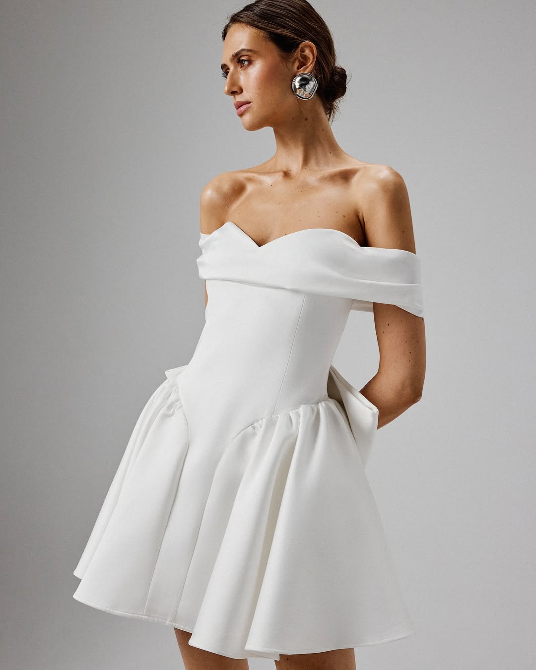 Online Lavish Alice Harleen Draped Bardot Bonded Satin Midi Dress In White