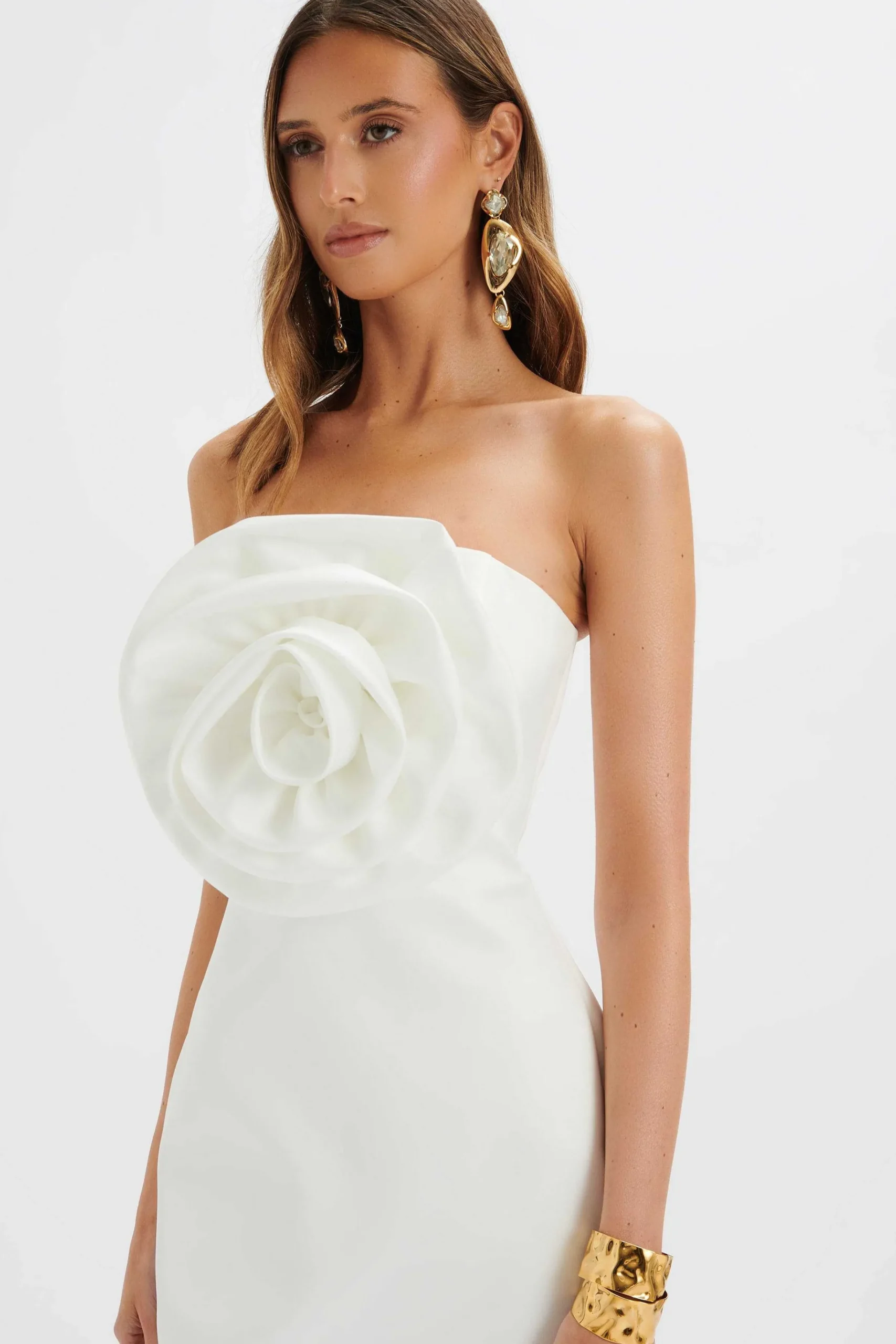 Expertly Crafted With Premium Satin Material, The Bryanna 3D Flower Bandeau Satin Mini Dress In White Boasts A Large 3D …