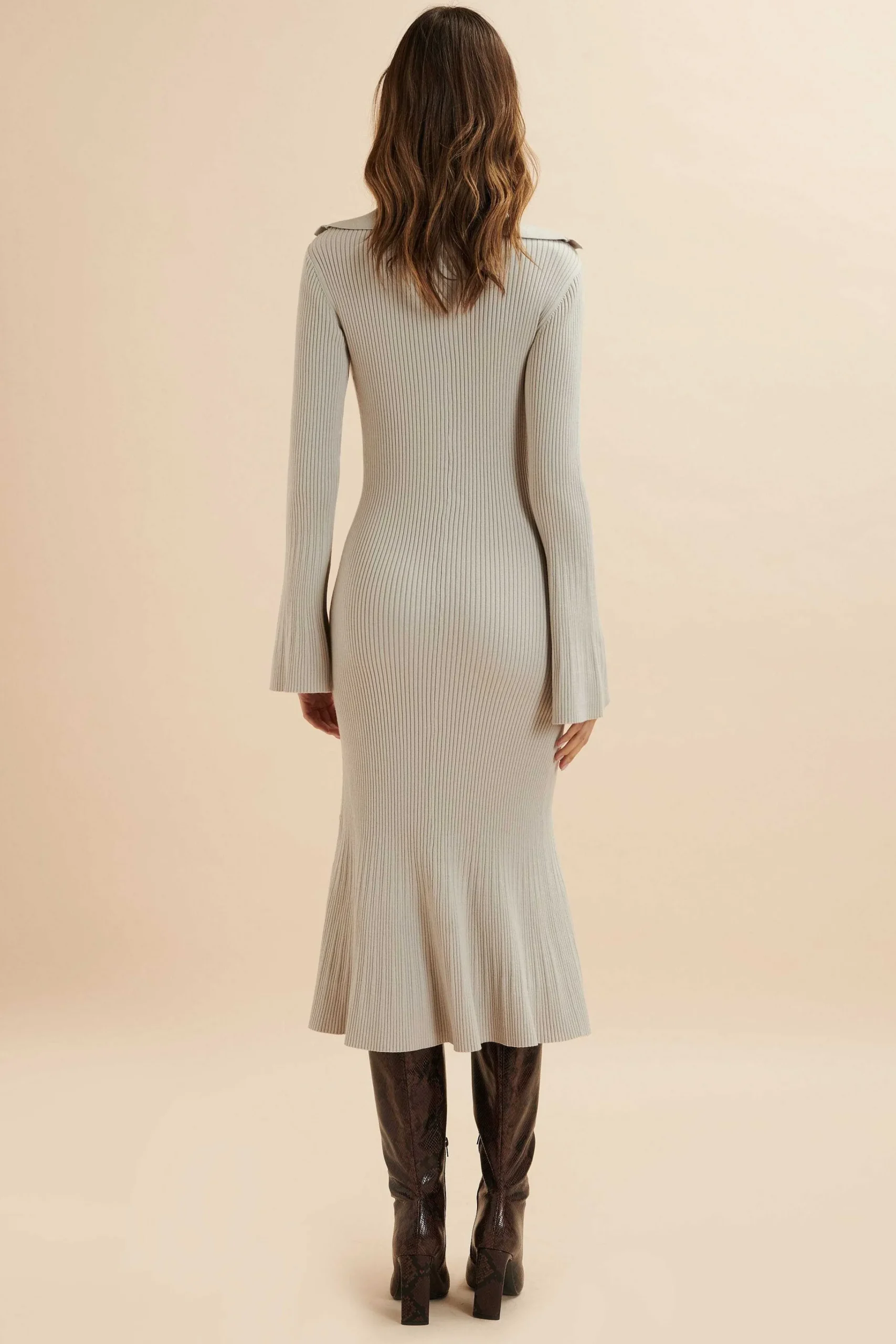 Cheap Lavish Alice Parker Knitted Ribbed Fit & Flare Collared Dress In Stone