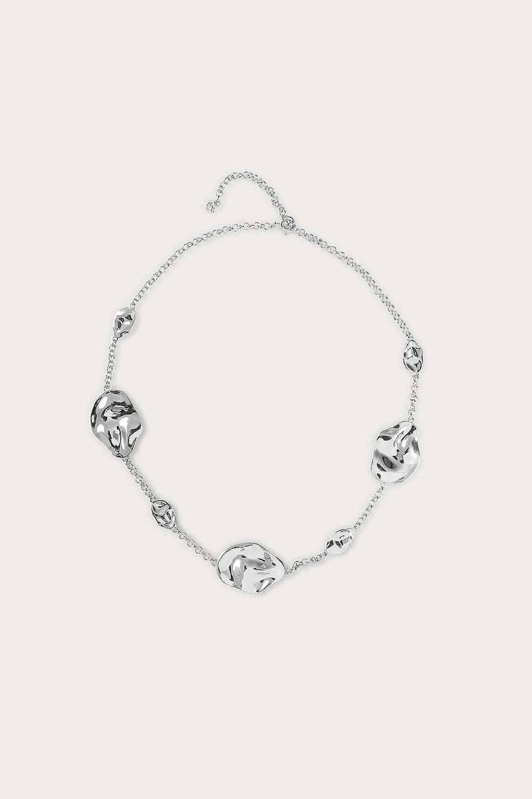 Fashion Lavish Alice Karia Hammered Effect Oval Charm Silver Necklace