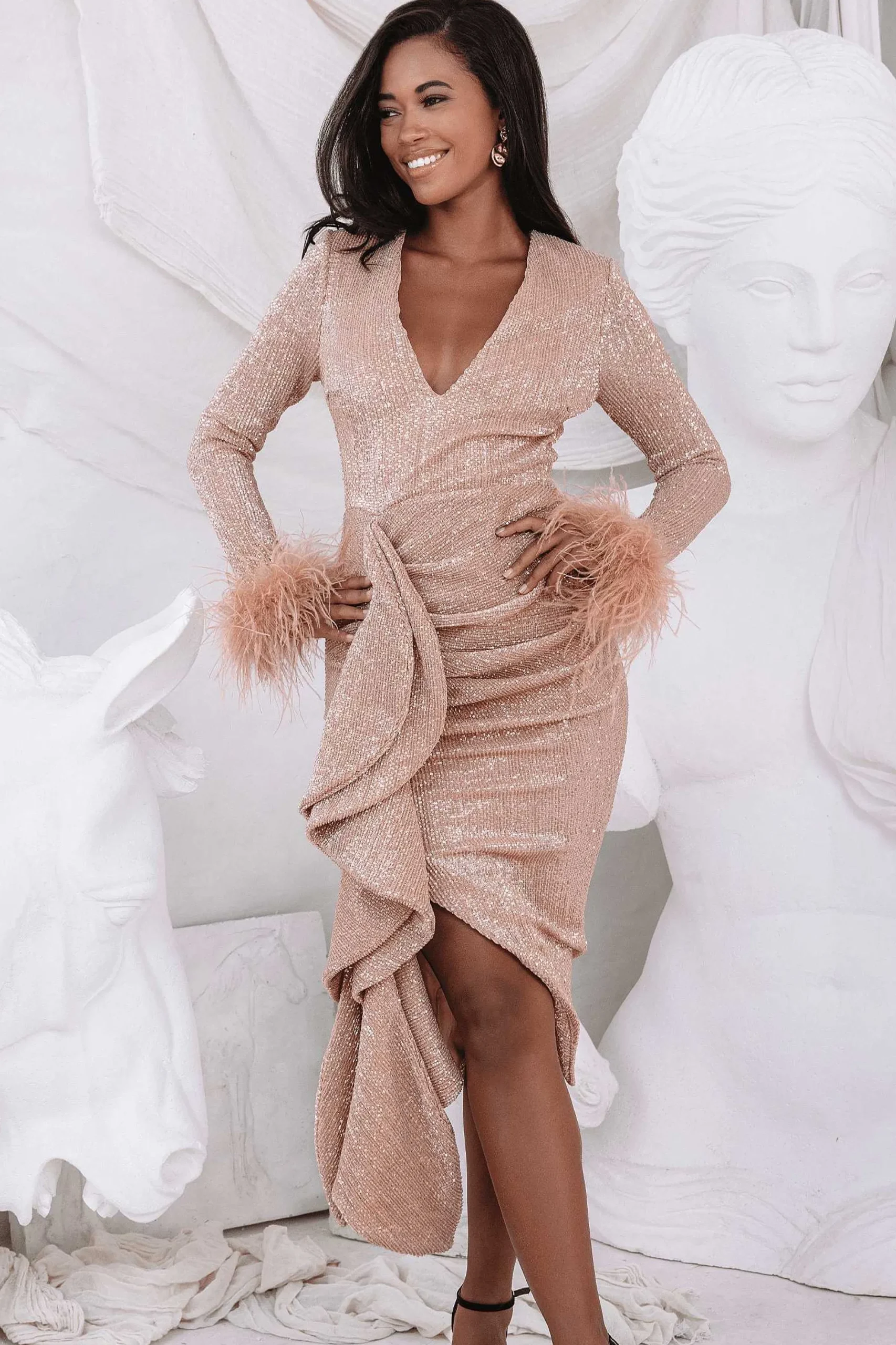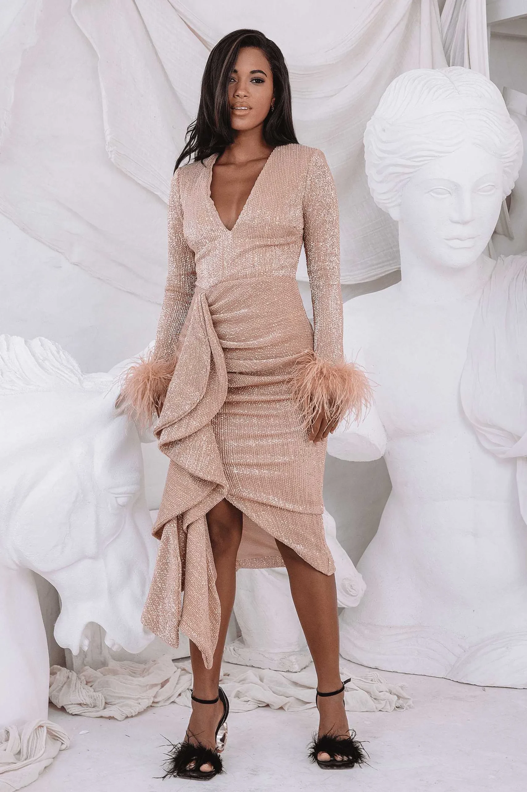 The Athena Draped Skirt Pleated Sequin Midi Dress Will Stand Out For Its Statement Luxury Details. The Gold Sequin Midi …