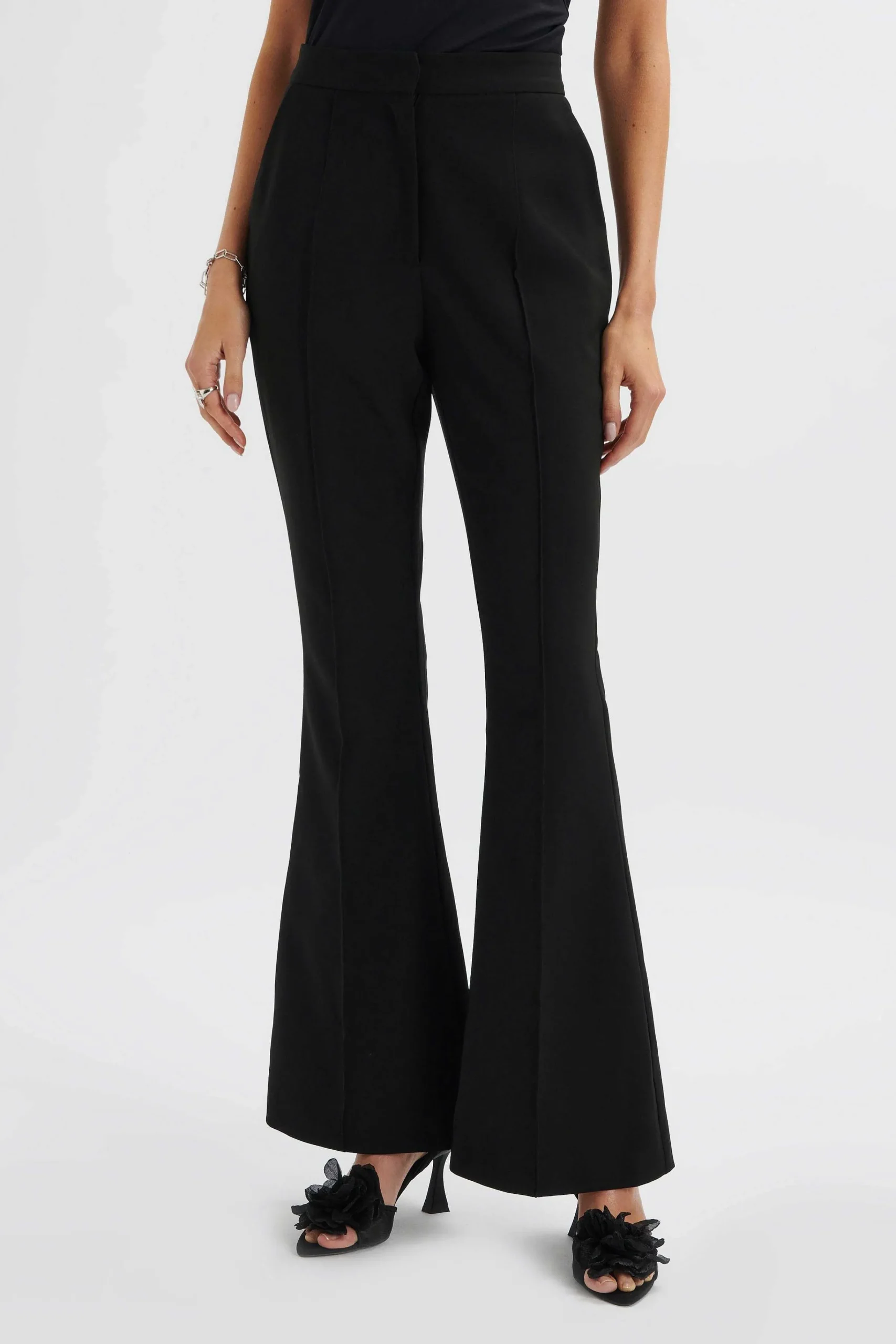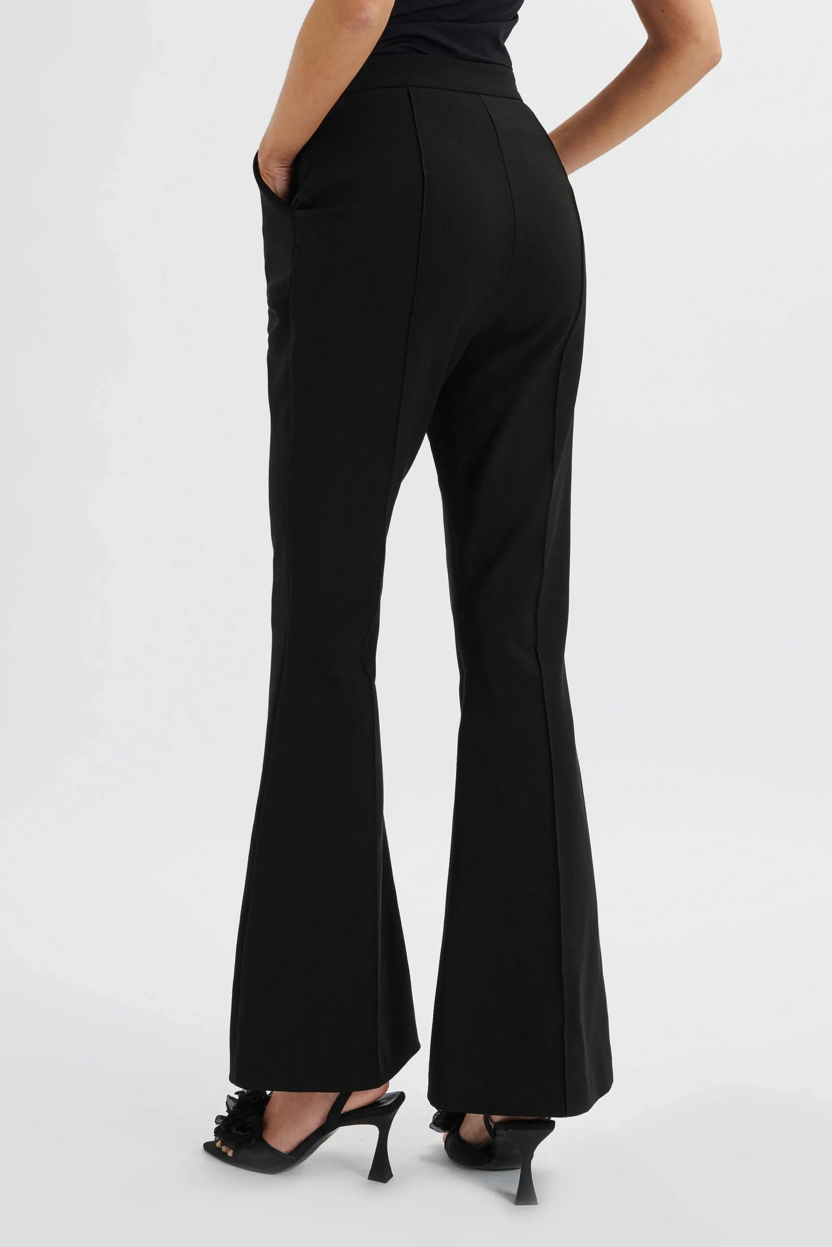 Expertly Tailored For A Flattering Fit, The Emelie Fit & Flare Trouser Is Crafted From Premium Crepe Fabric In Sleek Black. The Centre Leg Pin Tuck Detail Elongates The Silhouette, Whilst The Side Pockets Add Functionality. A Sleek Centre Front Zip With Hook And Bar Fastening Ensure Easy Wear.